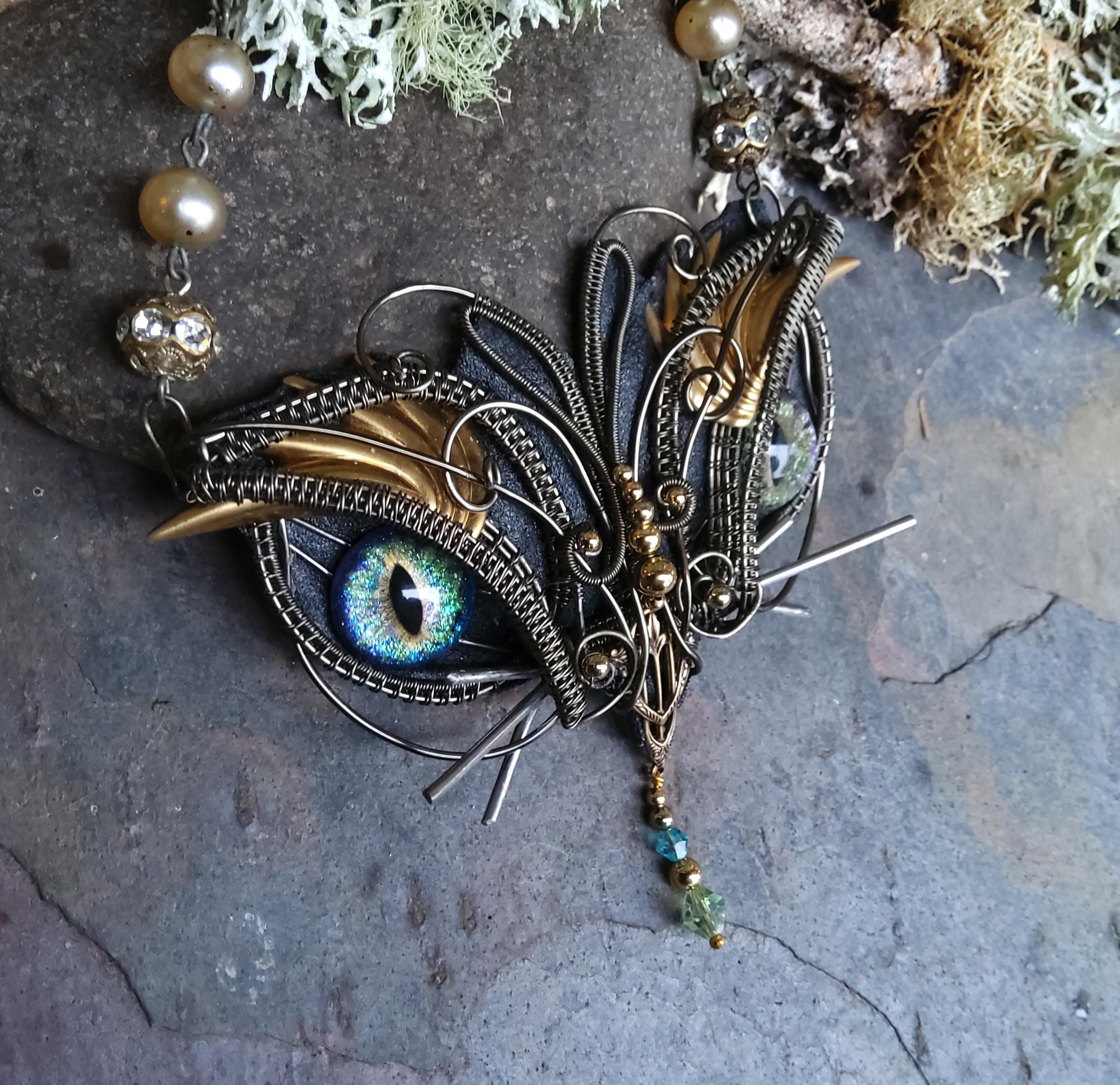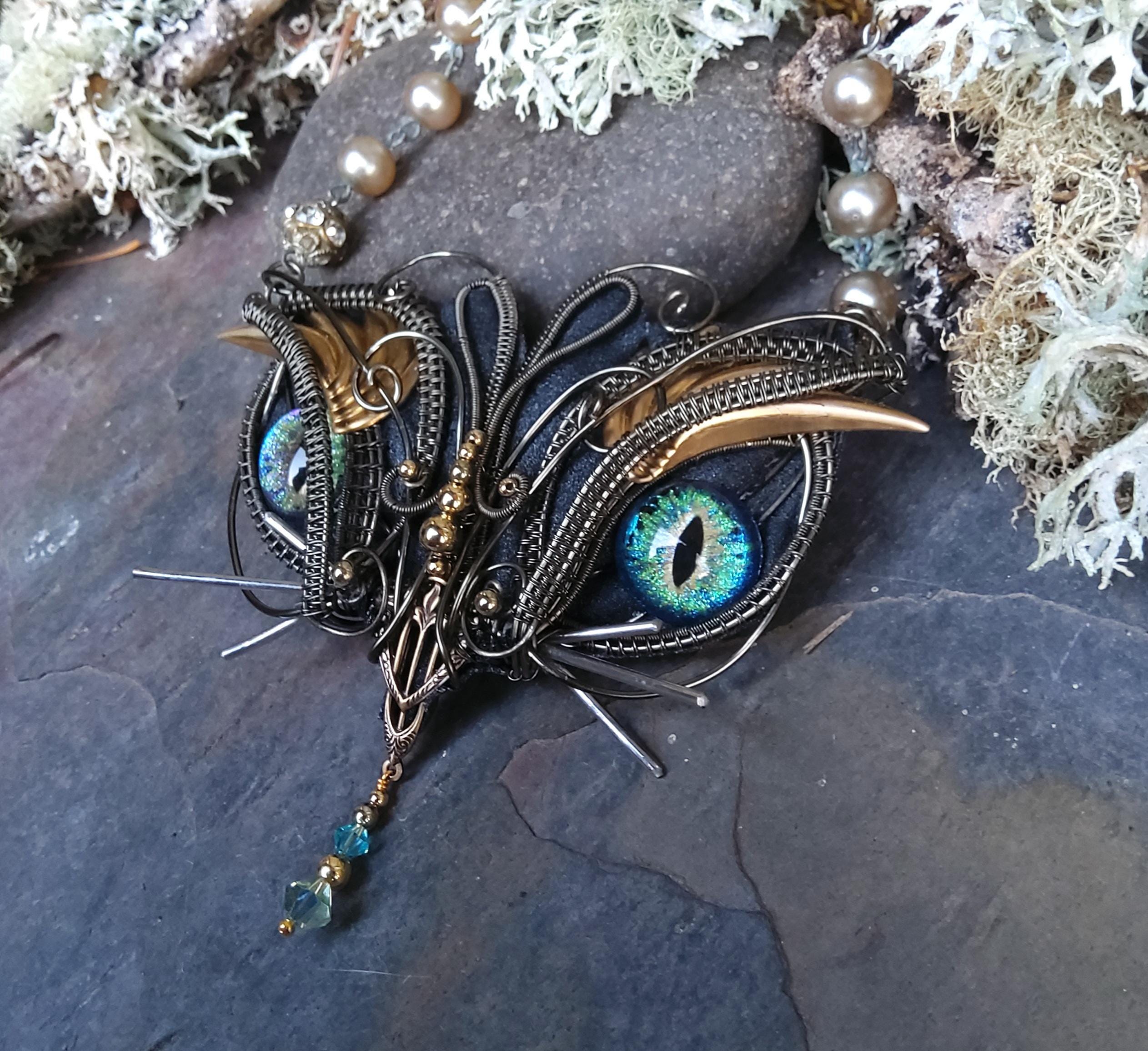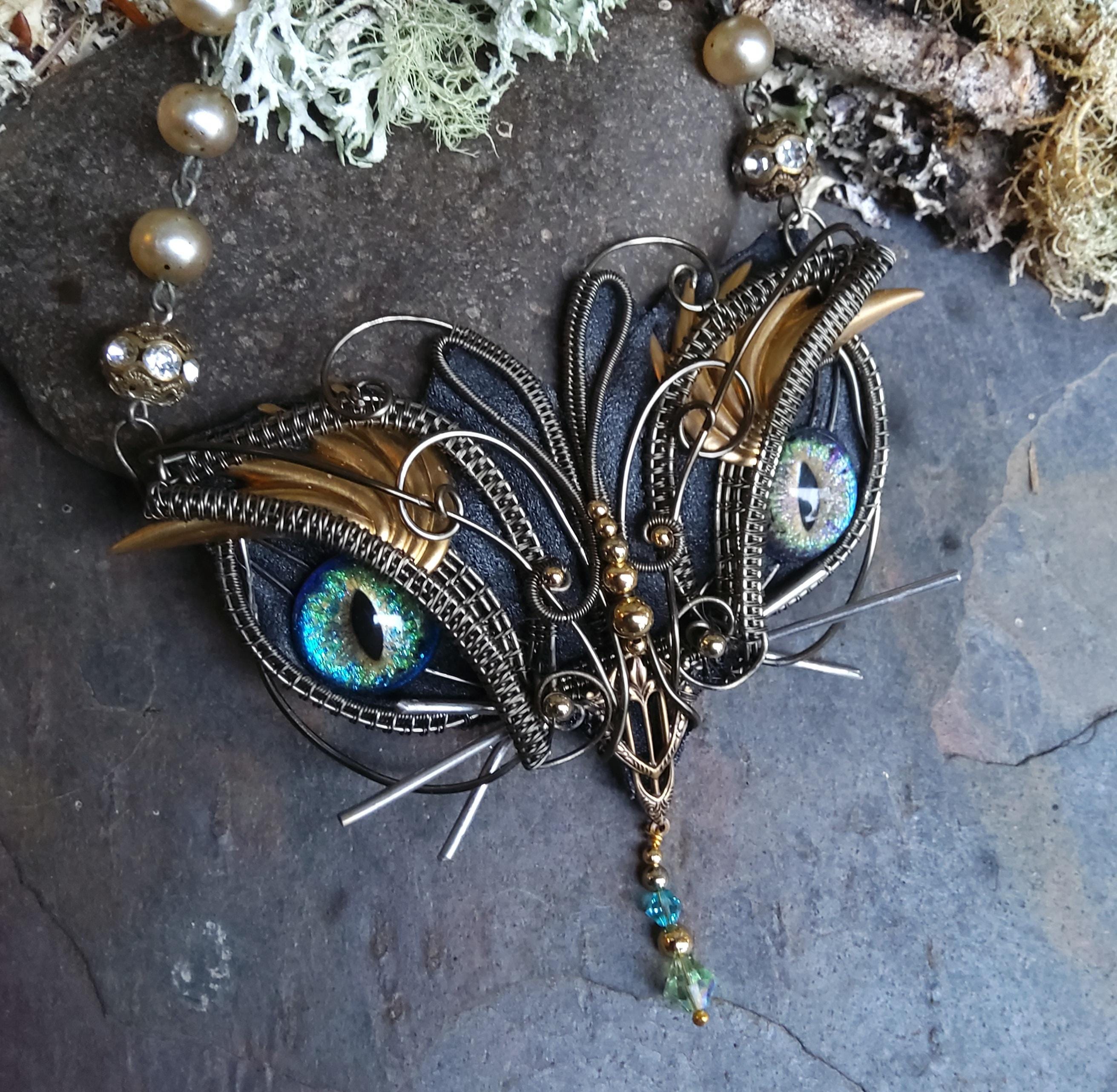 Back with another statement piece. This four inch wide kitty has been handcrafted by me, creating a one of a kind necklace that will be a joy to wear.